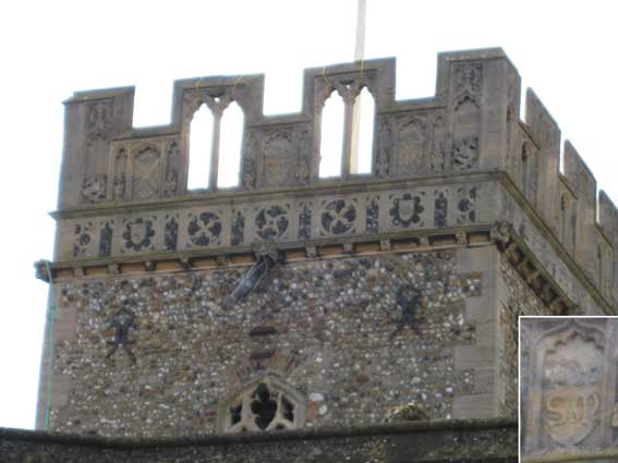 ecclesiastical 'windows'. The close-up shows the curly letters 'S