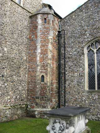 foliate features. Above the 'sill' is a frieze of flushwork (stone and