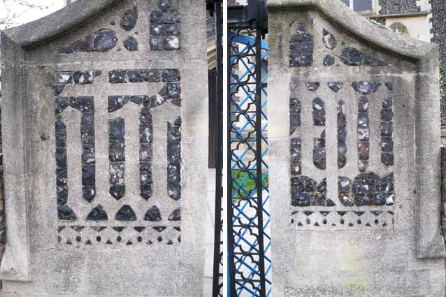 easy to miss the flushwork (knapped flint and stone) lettering flanking